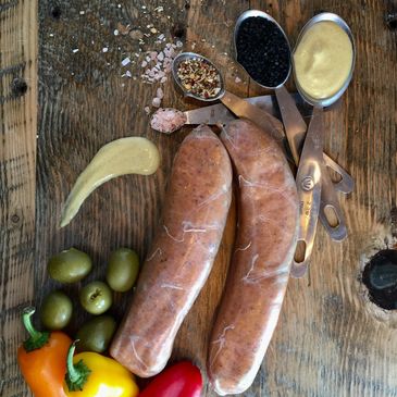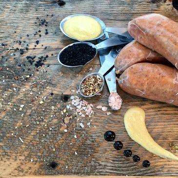 All of the meat we use for sausage making is raised without the use of added hormones or antibiotics. We take great care in selecting where our meats come from and animal welfare is high on our priority list. We keep sausage making simple and do not use any preservatives, additives, nitrates, colour enhancers, shelf life extenders, etc. T