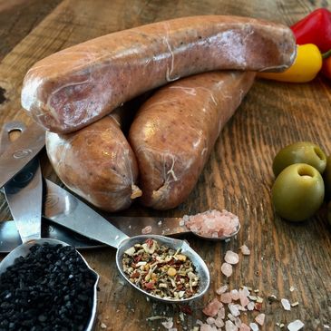 All of the meat we use for sausage making is raised without the use of added hormones or antibiotics. We take great care in selecting where our meats come from and animal welfare is high on our priority list. We keep sausage making simple and do not use any preservatives, additives, nitrates, colour enhancers, shelf life extenders, etc. Take a look at our labels, simple english and easy to understand.